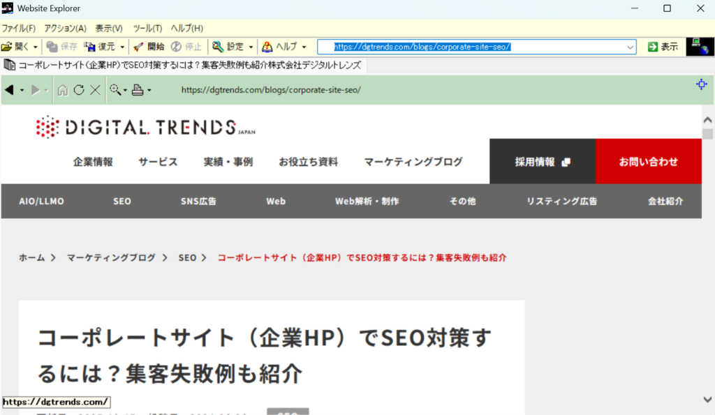 Website Explorerのような無料で利用できるツールを活用しましょう。