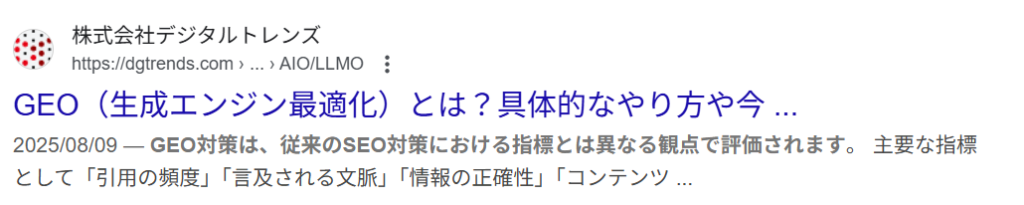 競合サイトがどのようなメタディスクリプションを設定しているか、自社のサイトが正しく反映されているかを確認する方法は簡単です。