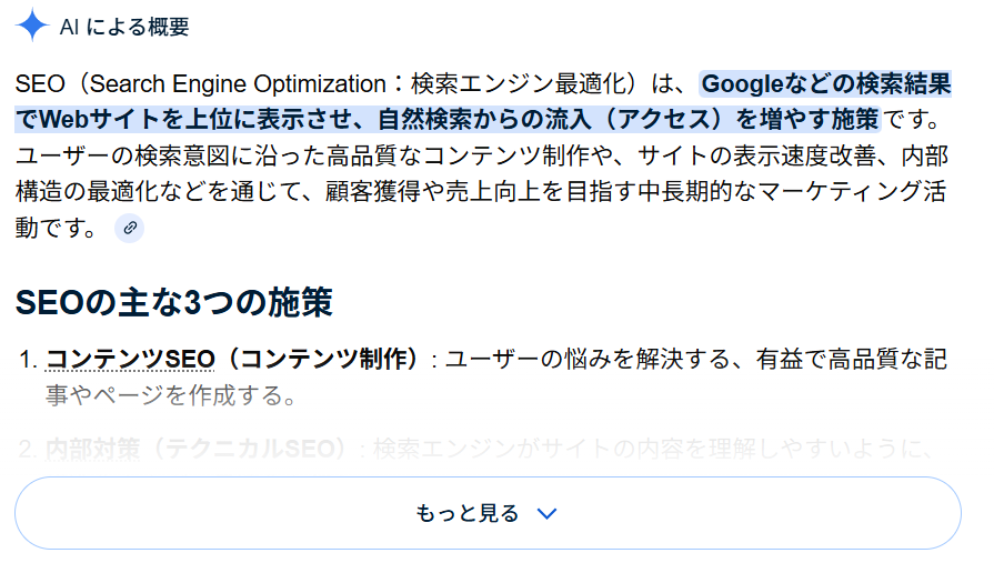 これにより、AIからの評価を高め、生成回答への組み込みや参照コンテンツとしての選定を促します。