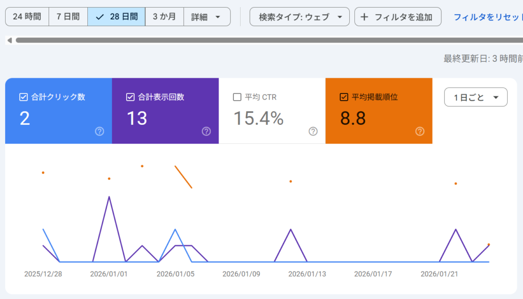 結果として、この記事は公開からわずか1週間で検索順位10位以内に入り、現在も安定してトラフィックを獲得し続けています。
