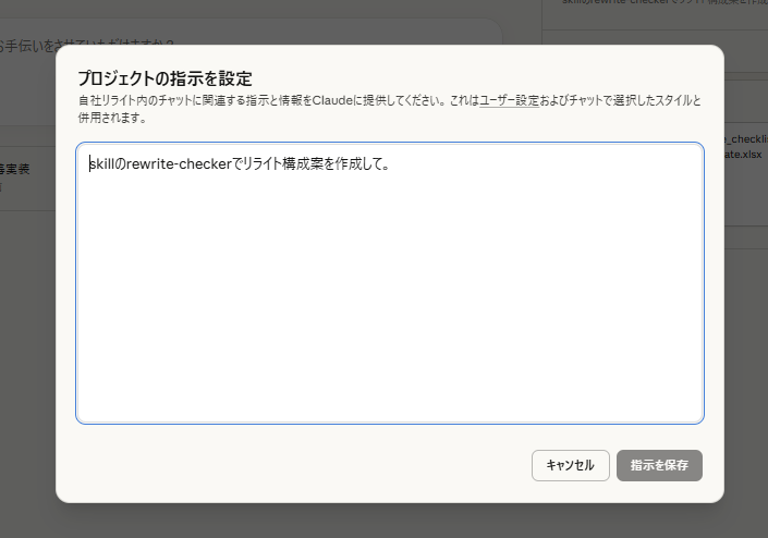 この指示文をProjectのカスタム指示に上書き保存すれば、次回以降は同じクオリティの出力がProjectを開くだけで再現できるようになります。