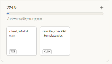 次に、自社の強みや実績に関する情報をテキストファイルにまとめ、Projectのナレッジに登録します。